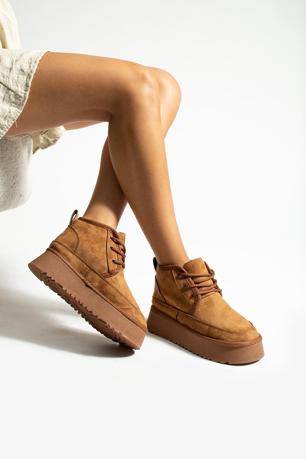 Lisebel Taba Bağcıklı Kalın Tabanlı İçi Kürklü Kadın Bot (UMT-080-TABA)