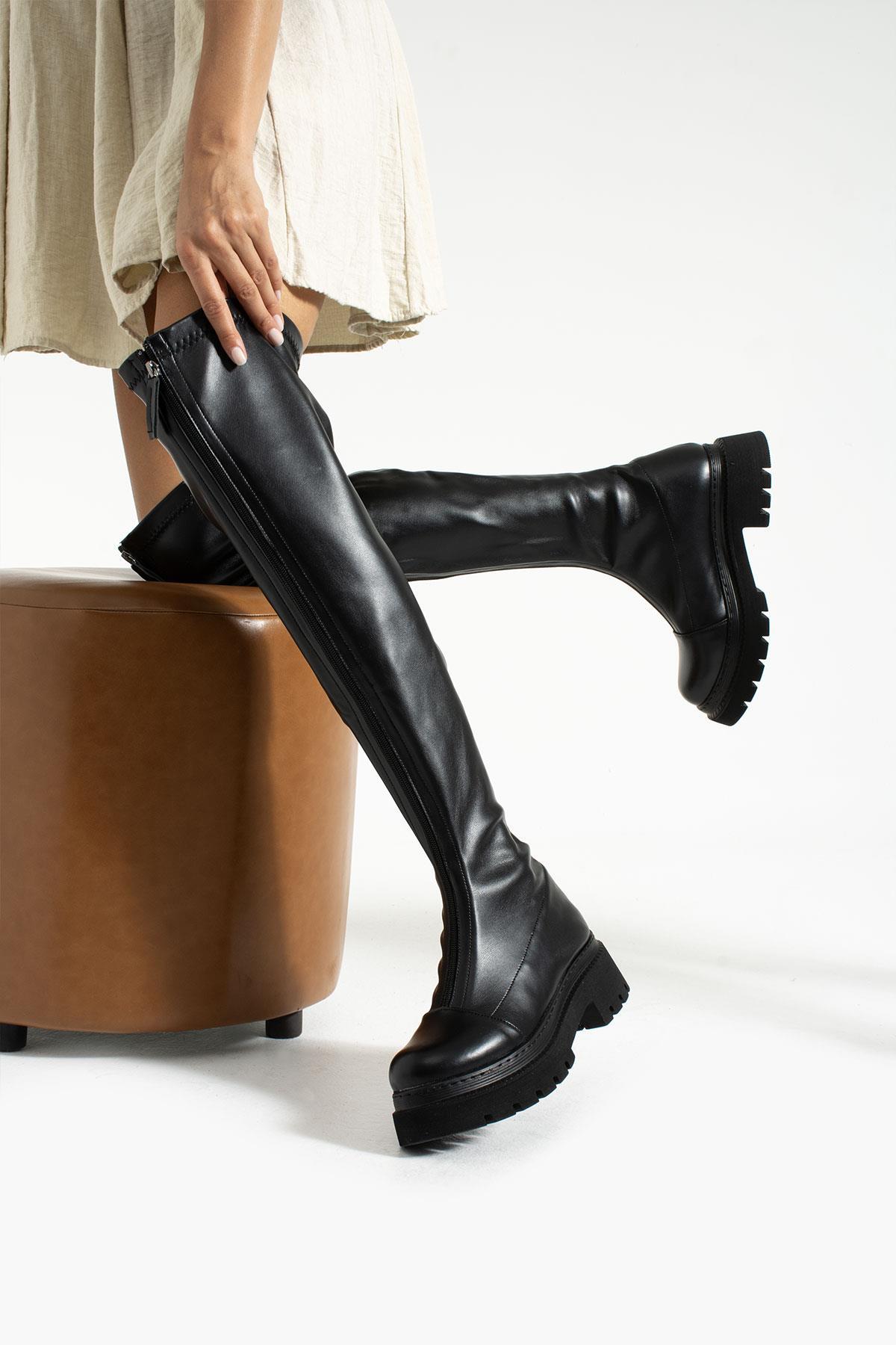 LUSY SİYAH FERMUAR DETAY TOPUKLU KADIN ÇİZME (UMT-076-SİYAH)